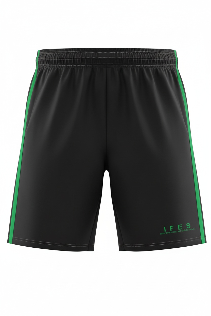 IFES BERMUDA TACTEL ENSINO MÉDIO PRETO — Bermuda confeccionada em tecido tactel 100% poliéster, acabamento leve e toque macio, ideal para uniformes escolares do Ensino Médio. Modelo com cós elástico e cadarço interno para ajuste, dois bolsos laterais e um bolso traseiro, costuras reforçadas e barra acima do joelho para maior mobilidade. Tecido de secagem rápida, resistente a puxões e com boa respirabilidade; indicada para atividades físicas e uso diário em climas quentes. Recomenda-se lavagem à máquina em ciclo suave, não alvejar, secagem à sombra e passar a baixa temperatura se necessário.