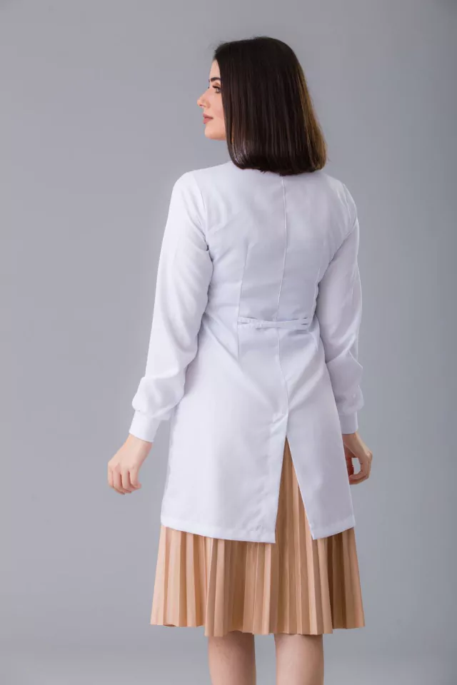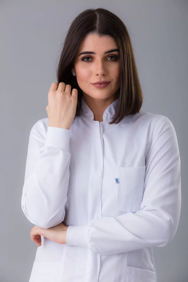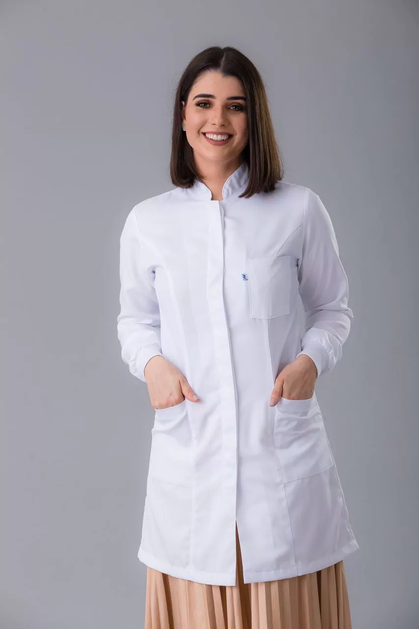 Um jaleco pensado na proteção do profissional da odontologia. Os riscos à saúde do dentista presentes no local de trabalho podem se relacionar a diversos fatores. Um deles é ligado à própria natureza das atividades, como a execução de movimentos repetitivos, ausência de pausas e alta intensidade do ritmo de trabalho. Nosso modelo foi desenhado para facilitar os movimentos na prática odontológica e dar proteção ao dentista durante os cuidados aos seus pacientes.