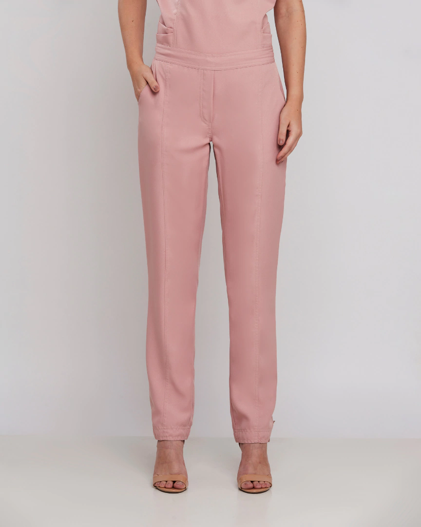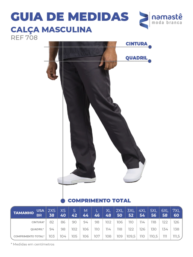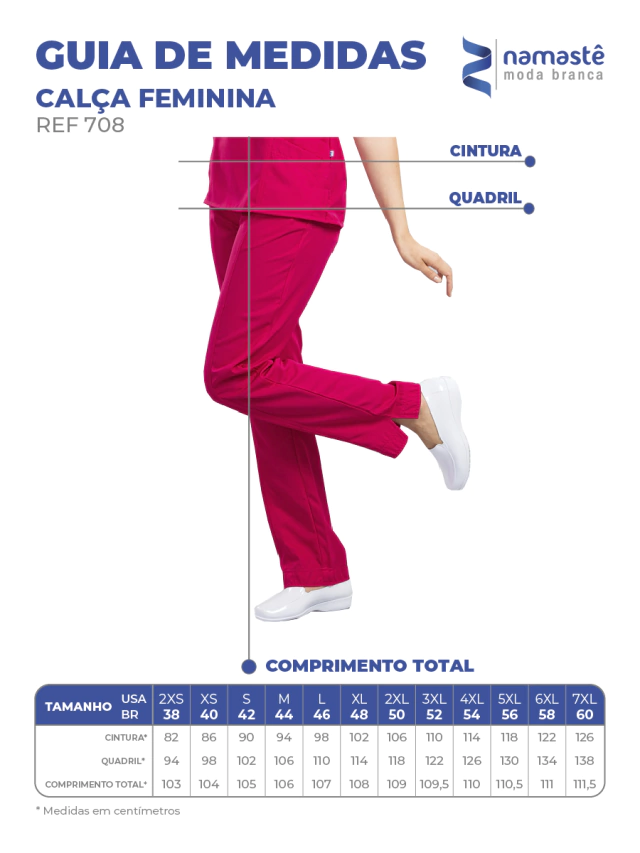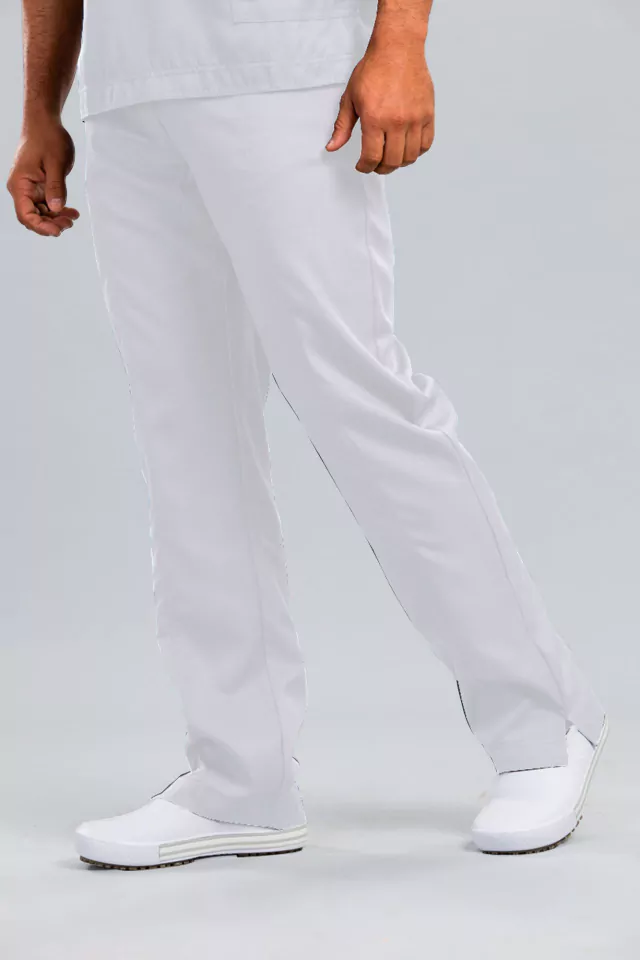 Calça scrub unissex NAMASTE Ref. 708 em POLIESTER 100% na cor branco, funcional e resistente para uso profissional.