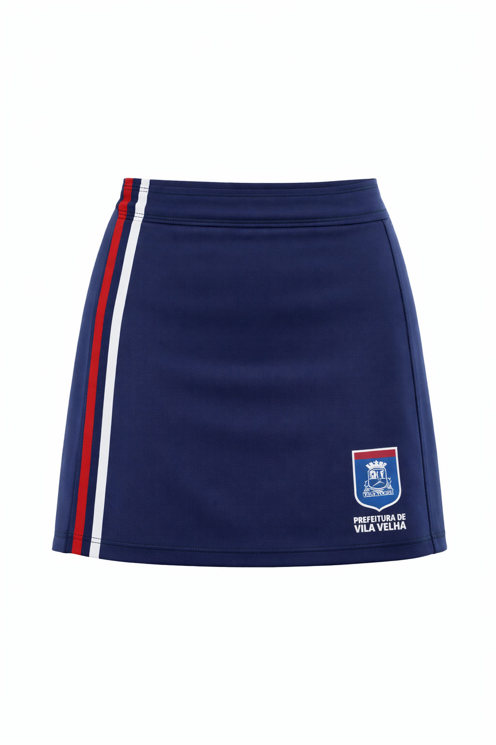 Short-saia em Poliéster 100% azul marinho, oficial Prefeitura Vila Velha, confortável e de fácil manutenção.