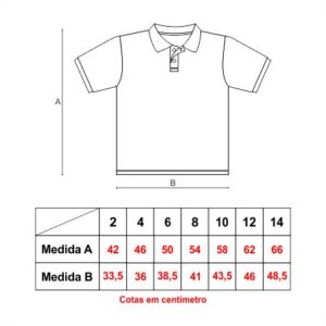 | Tamanho | 1, 2, 4, 6, 8, 10, 12, 14, P, M, G, EG, EP |
