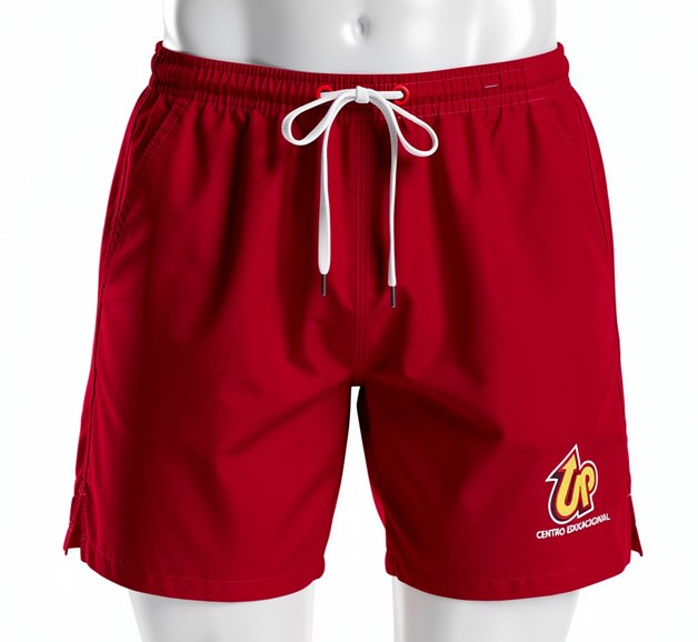 Bermuda tactel escolar em poliéster 100% na cor vermelho, leve e de secagem rápida.